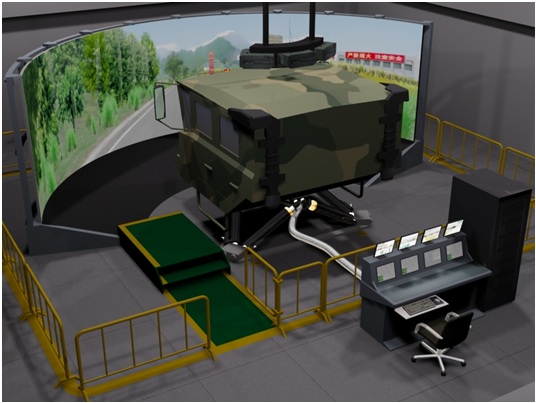 大型特种车驾驶模拟器以WSXXXX为原型车,主要组成及技术特征为:1:1全尺寸仿真驾驶舱、全套实车仪表及操纵设备、电动力回馈方向盘、三通道前向大屏幕柱面视景系统、三通道实体后视镜视景系统、六自由度电动平台、数字音频系统。